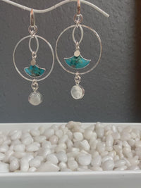 Turquoise Fan Hoops Sterling Silver Earrings