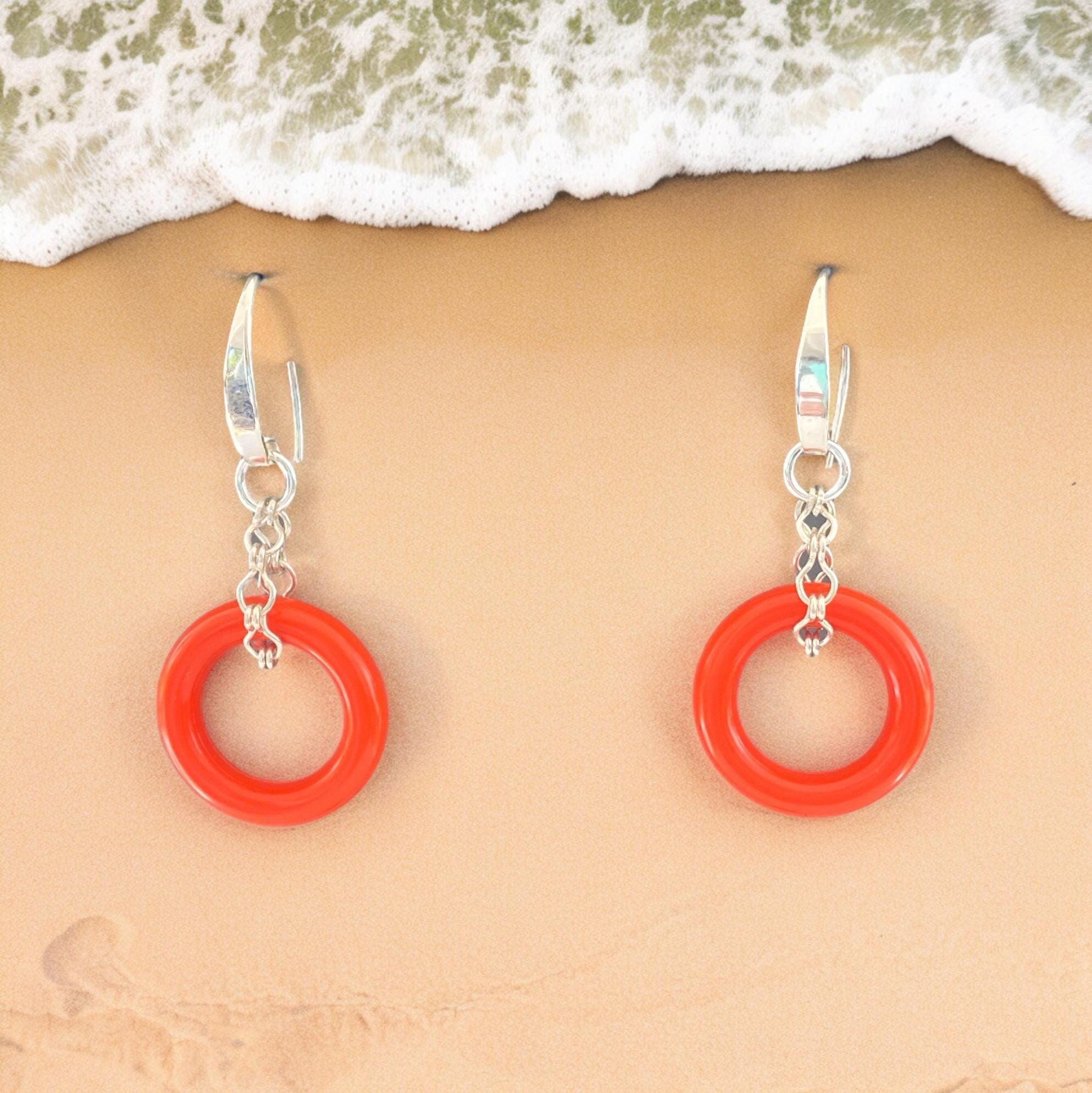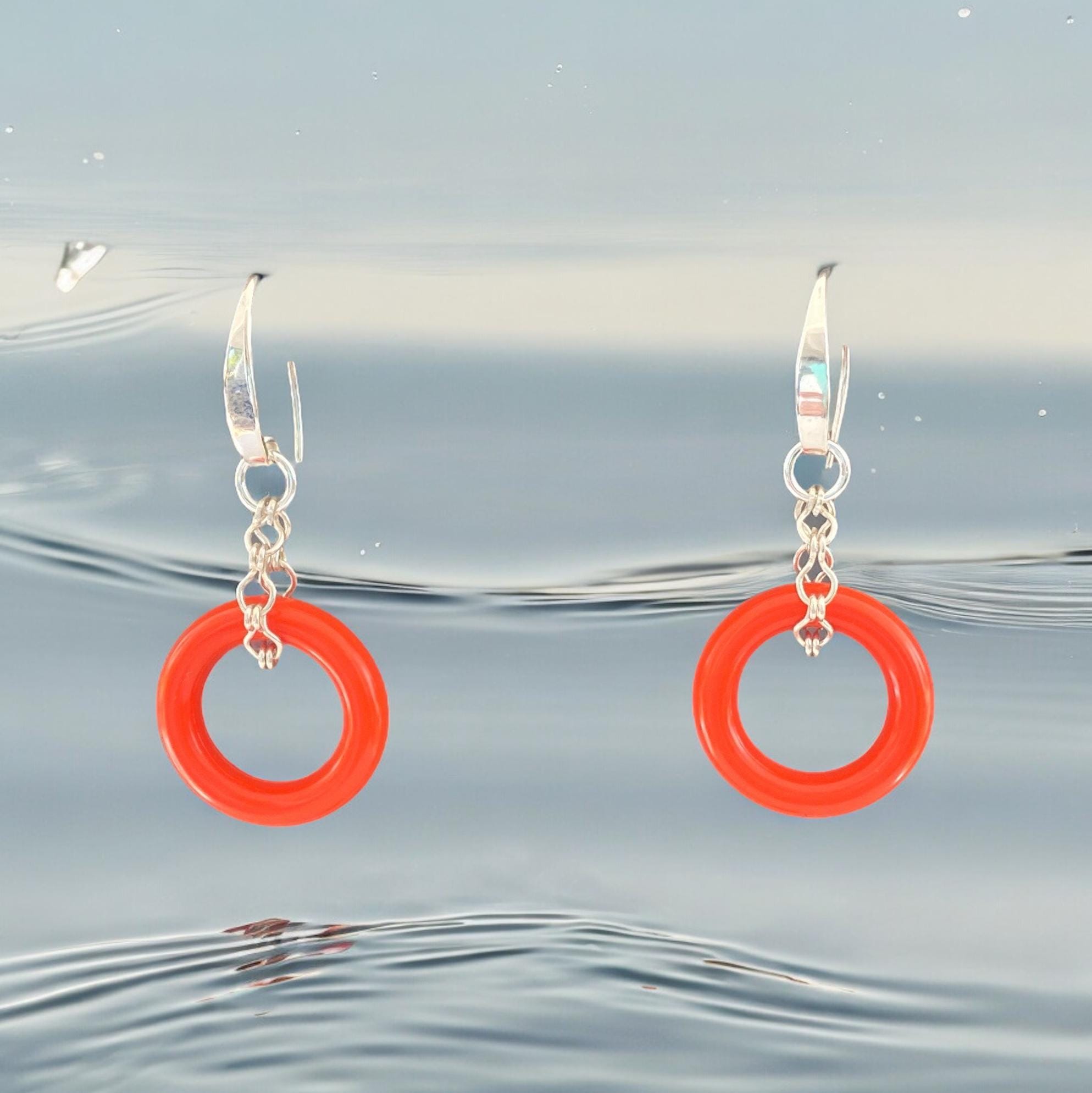 Vintage Orange Lucite Hoops and Sterling Silver.